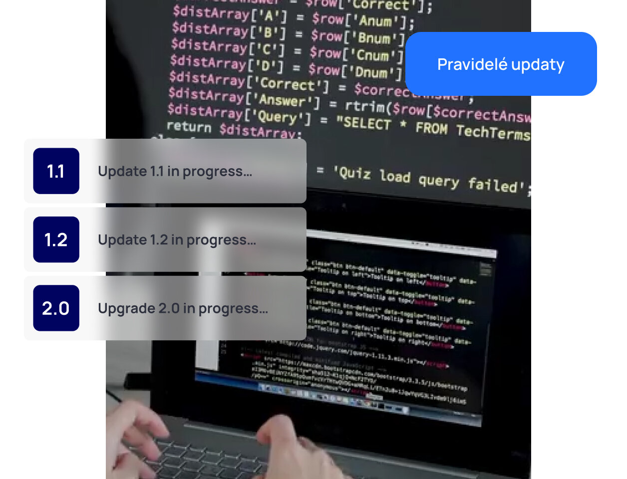 Zajišťujeme odbornou péči, rychlé reakce a pravidelné updaty, díky kterým vaše webová aplikace běží stabilně a bezpečně.